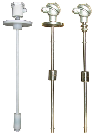 2、 磁性浮球液位控制開(kāi)關(guān),由磁性浮球、導(dǎo)桿、干簧管開(kāi)關(guān)、接線盒和安裝固定組件構(gòu)成。磁性浮球隨被測(cè)液位的變化而沿導(dǎo)桿上、下運(yùn)動(dòng),從而使導(dǎo)桿內(nèi)的干簧管觸點(diǎn)瞬時(shí)通(或斷),輸出相應(yīng)的控制信號(hào)。