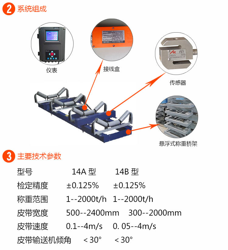 使用較廣泛的皮帶秤。由承重裝置、稱重傳感器、速度傳感器和稱重顯示器組成。稱重時(shí),承重裝置將皮帶上物料的重力傳遞到稱重傳感器上,稱重傳感器即輸出正比于物料重力的電壓(mV)信號(hào),經(jīng)放大器放大后送模/數(shù)轉(zhuǎn)換器變成數(shù)字量A,送到運(yùn)算器;物料速度輸入速度傳感器后,速度傳感器即輸出脈沖數(shù)B,也送到運(yùn)算器;運(yùn)算器對(duì)A、B進(jìn)行運(yùn)算后,即得到這一測量周期的物料量。對(duì)每一測量周期進(jìn)行累計(jì),即可得到皮帶上連續(xù)通過的物料總量。